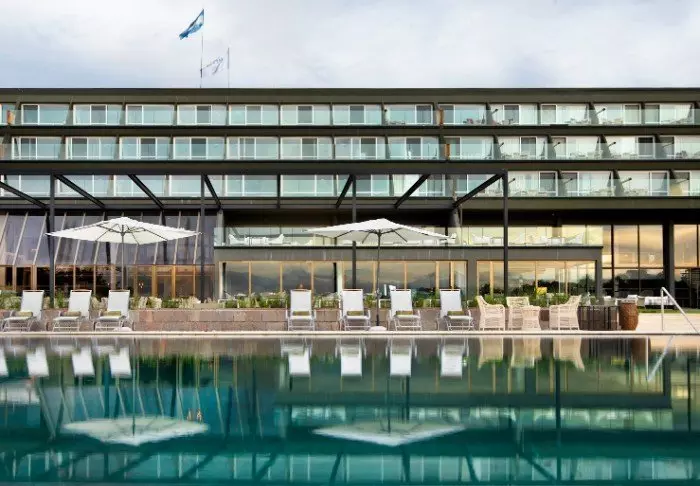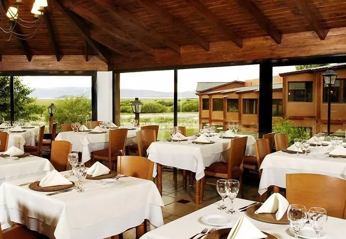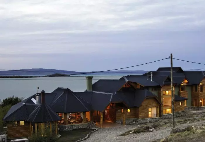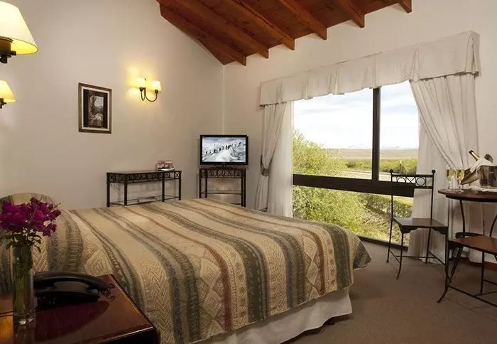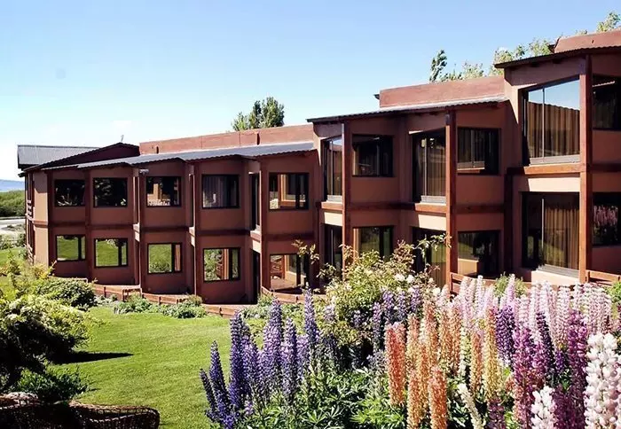Hotellet ligger vackert vid Lago Argentino och är byggt i harmoni med Patagoniens naturliga omgivningar.