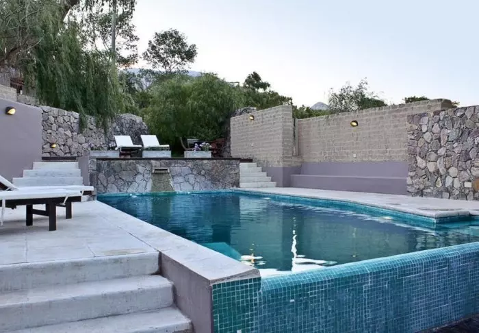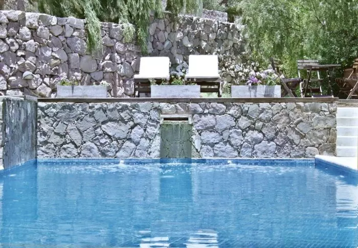 Hotellet har en stor pool i trädgården där du kan ta dig ett uppfriskande dopp eller bara ligga och blunda och lyssna på vattenfallets brus – det är ren terapi.