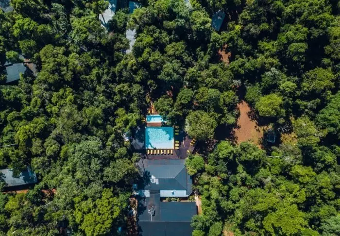 Från rummen leder små stigar mellan träden ner till pool- och restaurangområdet. Här kan du koppla av och ta dig ett uppfriskande dopp i den stora poolen efter en dag fylld med upplevelser.