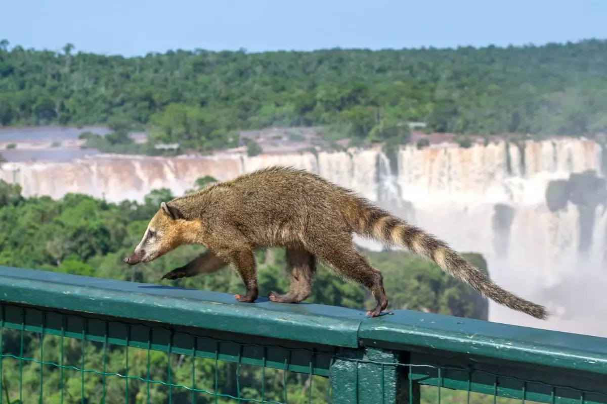 Eftersom vi korsar gränsen mellan Argentina och Brasilien, ska ni ha med passet på denna utflykt. De flesta av vattenfallen ligger på den argentinska sidan, men det är på den brasilianska sidan man får den bästa utsikten. Vi får se vattenfallen från olika vinklar och via en sittlift kan man komma ut på en utsiktsplattform. Här är det en fantastisk utsikt mot ”Djävulens Gap” där du är insvept i diset från vattenfallet. På gångstigarna kan man även få syn på de små näsbjörnarna som nyfiket följer med.