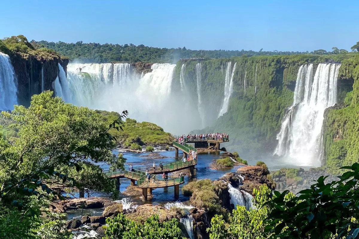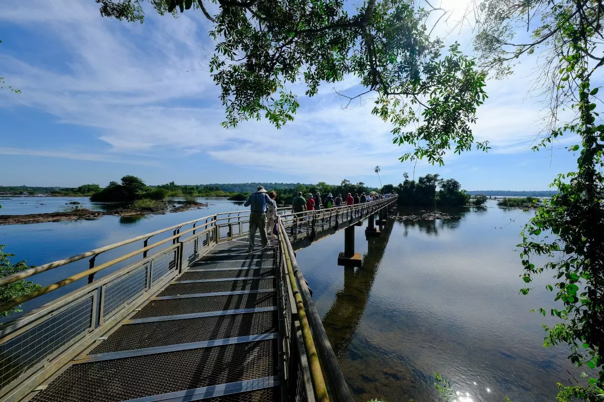 De flesta av vattenfallen ligger på den argentinska sidan, men det är på den brasilianska sidan som du får den bästa panoramautsikten över vattenfallen. Du får se vattenfallen från olika vinklar, och via en lång gångbro kommer du till en plattform varifrån du ser upp till Djävulens gap. Även om vattenfallet ligger en bra bit bort från dig så kan vattenstänk fortfarande göra dig ganska blöt!