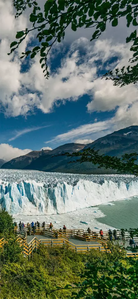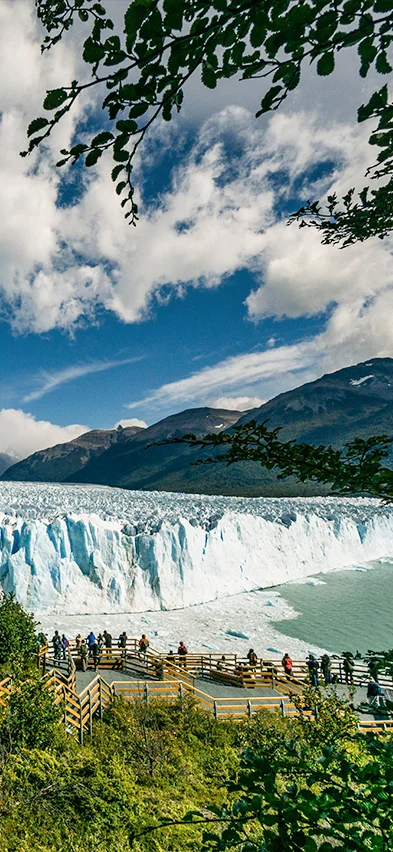 I dag ska du ut på en fantastisk heldagsutflykt till Los Glaciares nationalpark, som ligger cirka 80 kilometer från El Calafate. Det är den största nationalparken i Argentina och står på goda grunder med på UNESCOS världsarvslista. Parken är över 6 000 kvadratkilometer och har en helt exceptionellt vacker natur, bestående av enorma glaciärer, snötäckta berg, glaciärsjöar och slättlandskap. Hela 30 procent av parken är faktiskt täckt av is. Du ska besöka den berömda och mest tillgängliga glaciären av dem alla – den mäktiga Perito Moreno. Glaciären är cirka 30 kilometer lång, 5 kilometer bred och på vissa ställen över 70 meter hög. Det helt unika med denna glaciär är att den inte blir mindre. De flesta glaciärer smälter på grund av global uppvärmning och blir mindre för varje år, men Perito Moreno lyckas nyproducera samma mängd is som smälter bort.