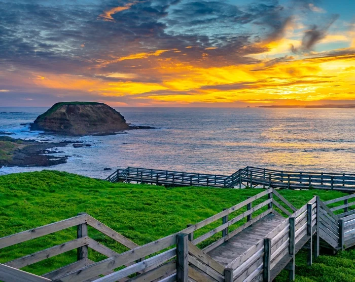 Senare på eftermiddagen fortsätter du mot Phillip Island, där du stannar vid Point Grant och The Nobbies. Här kan du njuta av den storslagna utsikten över Westernport Bay, Bass Strait och Seal Rocks, som hyser Australiens största koloni av pälssälar.