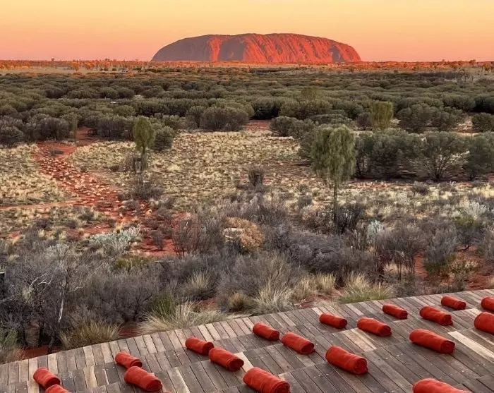 Du hämtas på ditt hotell och körs en kort bit till den öppna ökenteatern, som ligger på en sanddyn med en imponerande utsikt över Uluru och Kata Tjuta. Namnet Wintjiri Wiru betyder ”vacker utsikt mot horisonten” på det lokala språket pitjantjatjara och fångar perfekt essensen av denna otroliga kvällsutflykt.