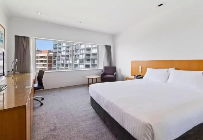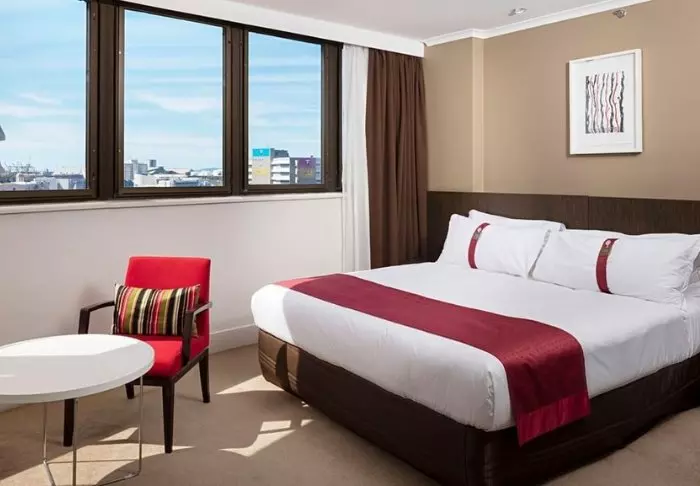 Holiday Inn har 226 rum med stora fönster från golv till tak som låter ljuset flöda in i rummet. Alla rum har aircondition, värdeskåp, strykjärn och strykbräda, te- och kaffefaciliteter, minikylskåp, platt-tv och gratis wifi. Som något ovanligt i Australien erbjuder hotellet gratis frukost som en del av priset!