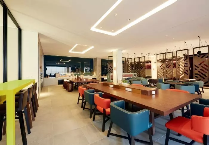 Hotellet har dock även en egen restaurang, som erbjuder både frukost och middag – och cocktails. Restaurangen ligger på 22a våningen och erbjuder en vacker utsikt över staden – i synnerhet vid solnedgången! Du har tillgång till hotellets pool och gym, och det finns wifi överallt på hotellet.