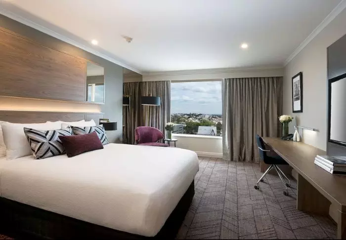 Det är möjligt att uppgradera rummet och köpa till ett rum med utsikt över Sydneys hamn och skyline.