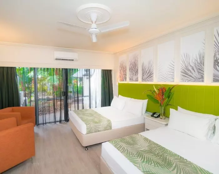 Mitt i Cairns centrum hittar du den trivsamma esplanaden, där det finns ett stort utbud av butiker, kaféer och restauranger. Vill du röra lite på dig kan du gå dit på 45–60 minuter, annars är det bara en kort taxiresa från resorten (cirka 20 AUD per väg).