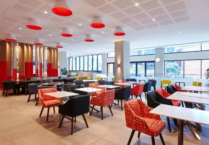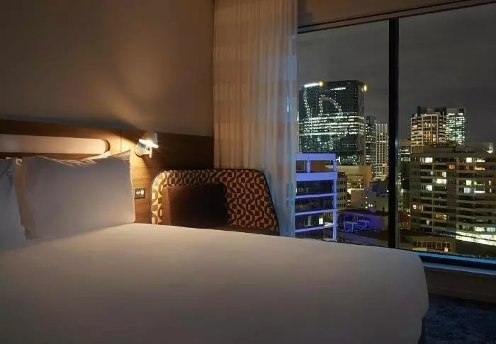 Holiday Inn har 226 rum med stora fönster från golv till tak som låter ljuset flöda in i rummet. Alla rum har aircondition, värdeskåp, strykjärn och strykbräda, te- och kaffefaciliteter, minikylskåp, platt-tv och gratis wifi. Som något ovanligt i Australien erbjuder hotellet gratis frukost som en del av priset!