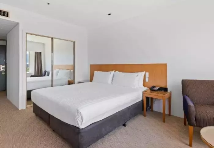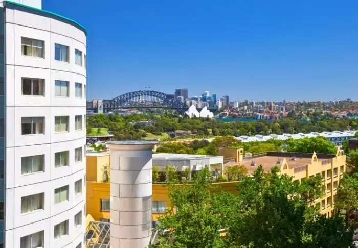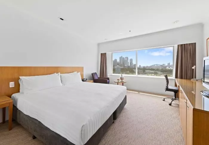 Det är möjligt att uppgradera rummet och köpa till ett rum med utsikt över Sydneys hamn och skyline.