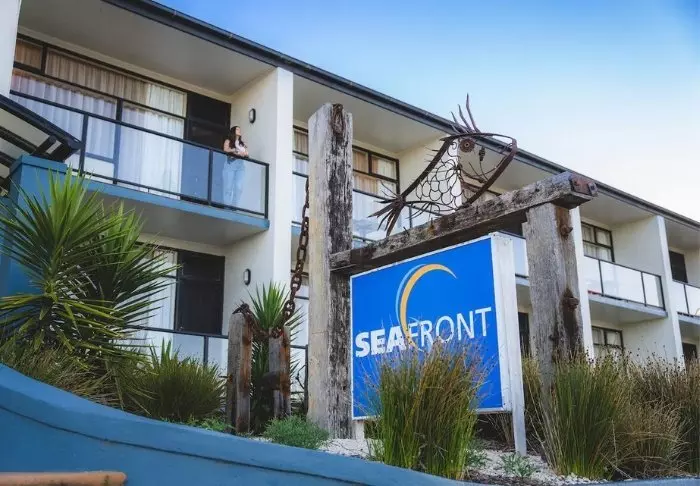 Mitt i Penneshaw och med vacker utsikt över grönt gräs och blått hav hittar du Kangaroo Island Seafront.
