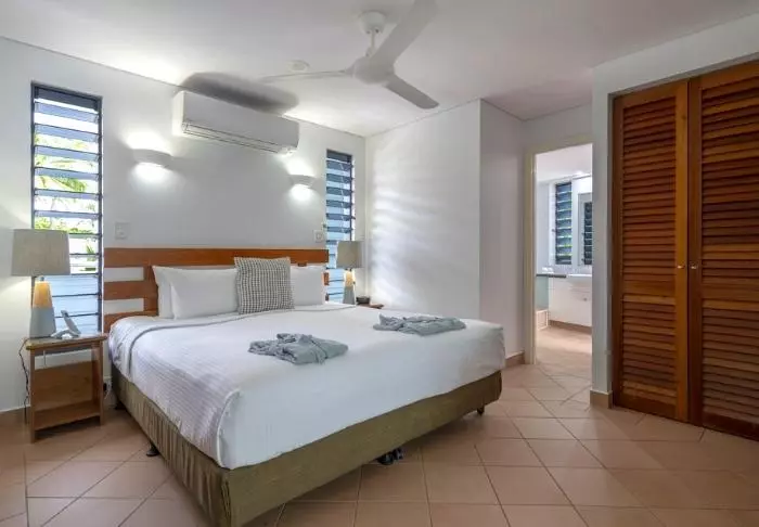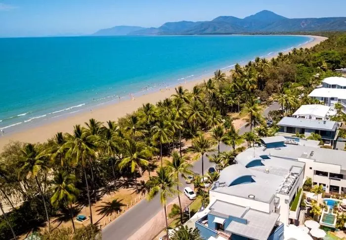 Utanför hotellet möts du av just Four Mile Beach – praktiskt taget bokstavligt talat. Du behöver bara gå över vägen så ligger stranden där. Hotellet har faktiskt ett av de bästa lägena i hela staden. Allt finns nära till hands.