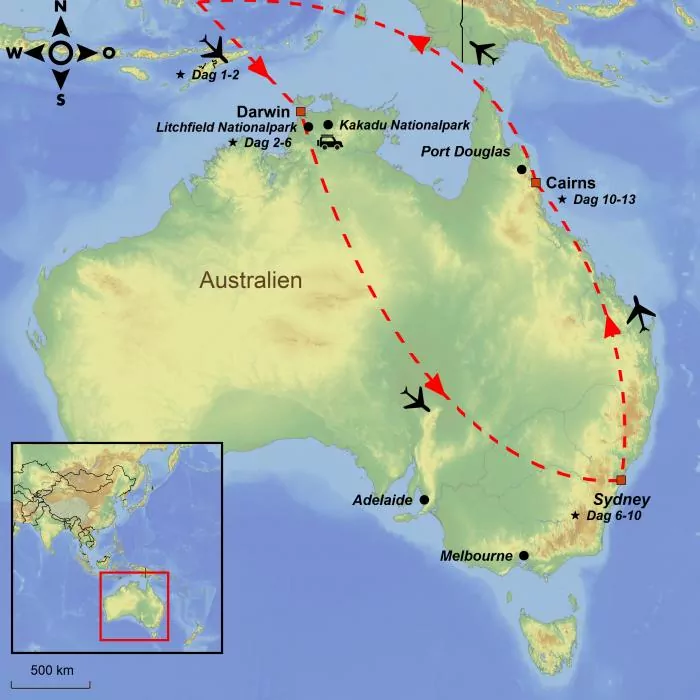 Denna resa till Australien är perfekt i vårt sommarhalvår. Den är även perfekt för dig som reser med barn. Många av dagarna tillbringas på egen hand så att familjen själv kan bestämma programmet.