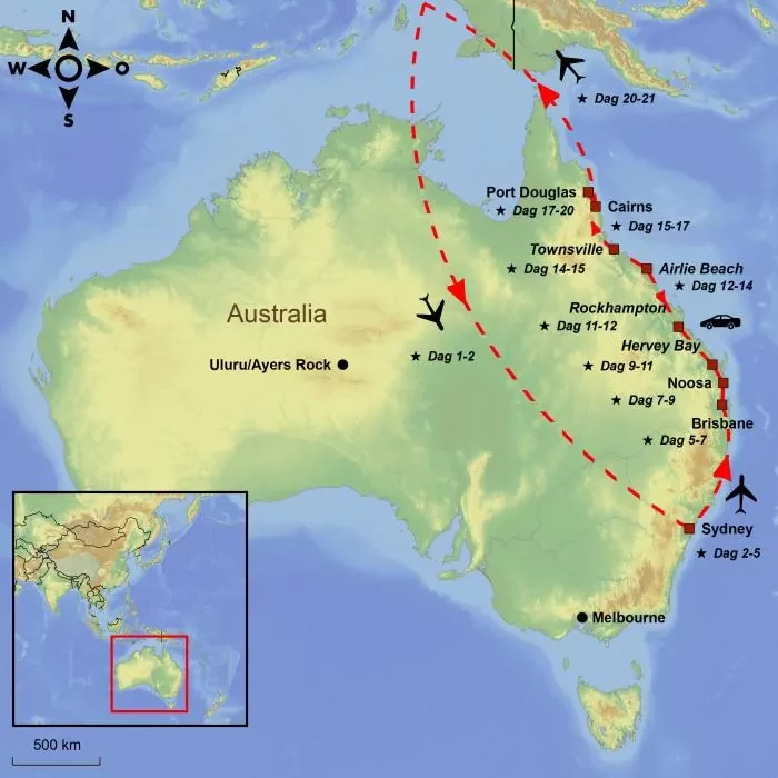 Du ska bland annat uppleva världens största sandö, K’gari, tidigare känd under namnet Fraser Island, som imponerar med sina kristallklara sötvattensjöar, frodig regnskog och oändliga vita sandstränder. Dessutom ska du åka på en båttur i Whitsunday Islands nationalpark och besöka Whitehaven Beach, som är en av världens vackraste stränder. Självklart besöker du även Cairns, som är utgångspunkt för utflykter till Stora barriärrevet – världens största korallrev.
