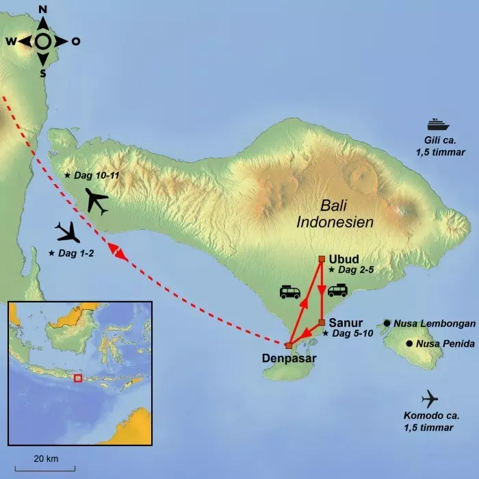 I dag flyger du mot gudarnas ö, Bali, med mellanlandning(ar) på vägen.