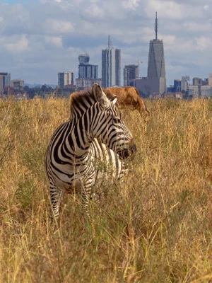 Precis i utkanten av Nairobi, med utsikt över den stora staden, hittar du Nairobi National Park, som är hem åt mer än 100 olika arter. Detta ger dig möjlighet att uppleva det afrikanska djurlivet utan att ens lämna staden. Nationalparken är liten, men innehåller en stor population av noshörningar – så om du vill uppleva dessa djur, är Nairobi National Park platsen att besöka. Det enda klassiska safaridjuret du inte hittar här är elefanten. Med sina 117 km2 är nationalparken helt enkelt för liten för dessa jättelika djur.