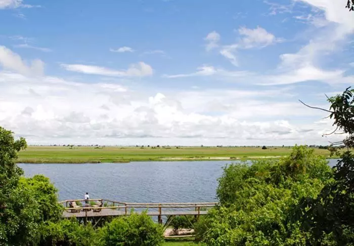 Här finns en 250 meter lång boardwalk längs floden med flera utsiktsplatser med mjuka stolar, halvskugga och en makalös utsikt över Chobefloden och dess rika, varierande djurliv. Njut av solnedgången med en kall drink i handen – det finns nästan inget vackrare i världen än en solnedgång över Chobe National Park.