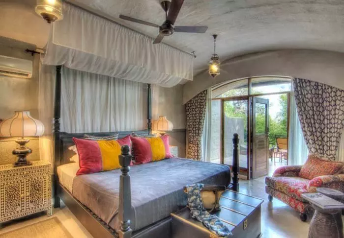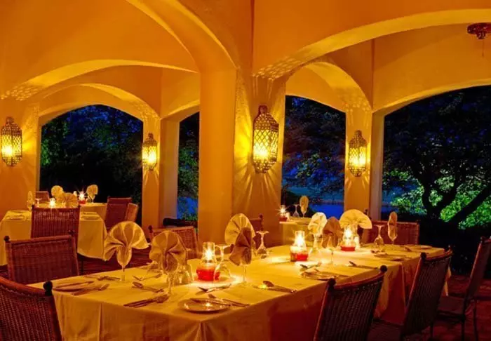 Hela lodgen är vackert inredd i morisk stil med valv, lanternor, stora kuddar och en fin och smakfull blandning av neutrala och skarpa färger Lodgen har fyra restauranger, två barer, sex loungeområden, en liten butik, pool, spa, bom’a, och en stor trädgård med massor av plats.