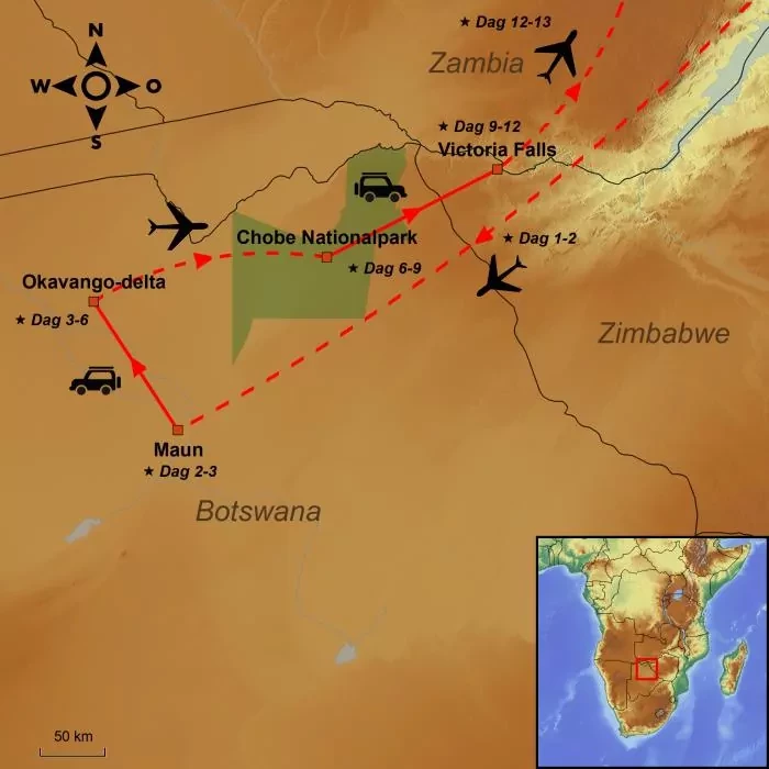 Åk på safari i ett av världens bästa safariländer. Övernatta i ett trivsamt tält mitt i Okavangodeltat, se de många elefanterna i Chobe och låt de mäktiga Victoriafallen skölja bort resdammet.