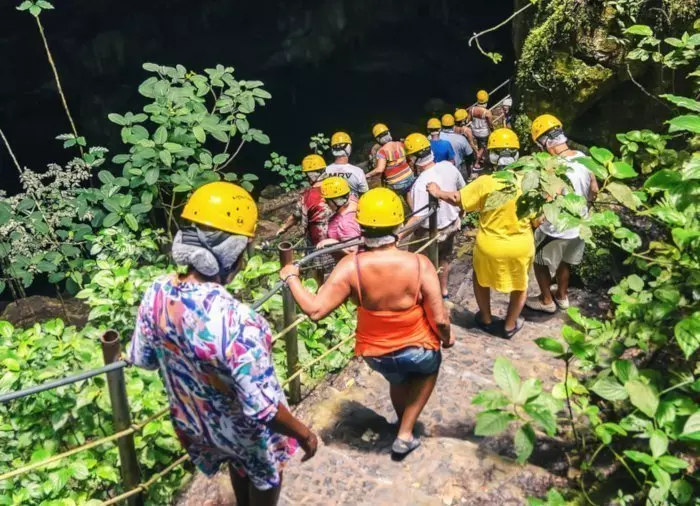 Du går tillsammans med en mindre grupp och en guide 300 meter ner för branta trappor, som är uthuggna ur de kalkstensklippor som grottan är gjord av. På vägen kommer ni att ta pauser, och då kan du beundra den vackra grottan medan guiden berättar om de olika geologiska formationerna som förekommer här: stalaktiter, stalagmiter och flera andra kalkstensavlagringar. Vid foten av trapporna finns det en plattform, där du kan stå och njuta av de bildsköna omgivningarna och ta massor av vackra foton. Själva sjön i grottan är över 80 meter djup där den är som djupast, och där lever sällsynta albinoräkor. Här kan man också hitta ben från sabeltandade tigrar och stora däggdjur, som levde i området för mer än 12 000 år sedan.