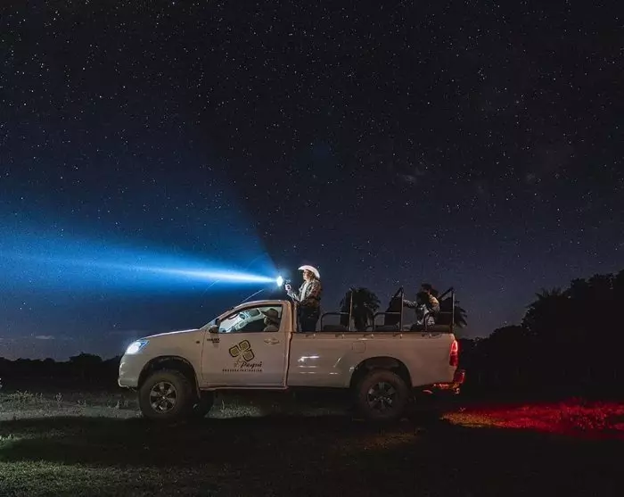 Tillbaka i lodgen serveras middagen, och du kan somna till ljuden från Pantanals slätter.
