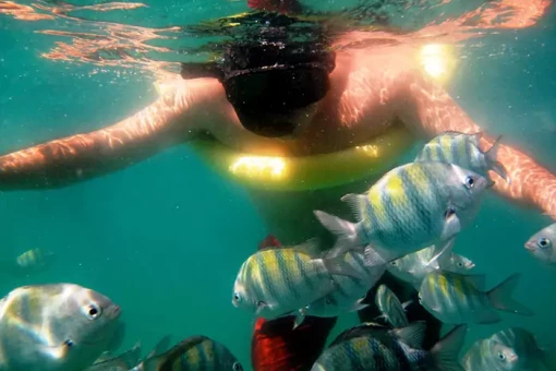 Resan börjar med en liten bilresa följt av en promenad på cirka 1,5 kilometer i den frodiga regnskogen innan du når floden. Din guide kommer att ge en detaljerad introduktion till snorkling så att alla kan delta även om du kanske aldrig har snorklat tidigare. Att se livet under vattenytan på nära håll är en obeskrivlig upplevelse. På vissa ställen kan du bara flyta med strömmen, medan du i andra behöver simma. Vattentemperaturen är cirka 26 grader, och att simma bland färgglada fiskar och frodiga vattenväxter är en helt unik upplevelse – det känns som att du befinner dig i ett stort akvarium!