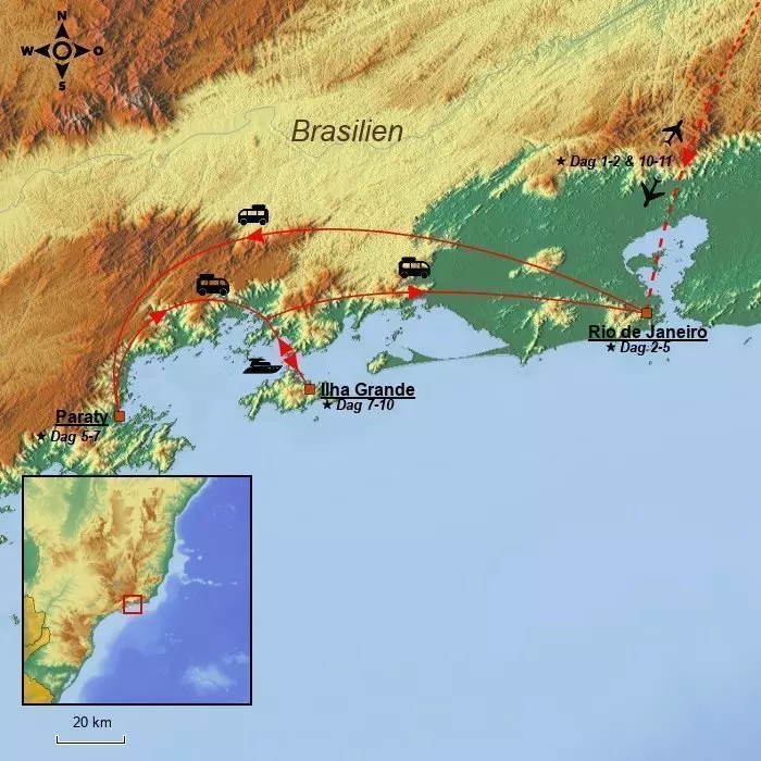 Resan avslutas på den frodiga paradisön Ilha Grande, där vacker natur och orörda stränder väntar.
