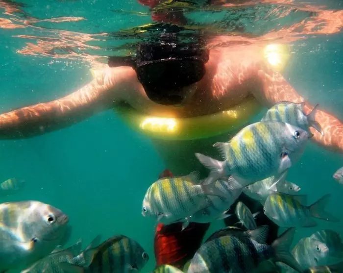 Du kan även boka en båttur hemifrån till den vackra blå lagunen , där du kan bada och simma med färgglada fiskar i det klara vattnet.