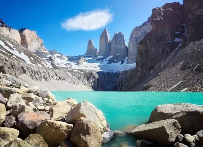 På vägen korsar du iskalla bergsströmmar och går längs moräner som avlagrats av glaciärer genom tiderna. Den sista biten är väldigt ojämn och vissa delar av rutten är väldigt brant, vilket kan vara jobbigt för knäna. Men belöningen är stor när du når fram till ”Base de Las Torres” som ligger vid foten av det lodräta granittornet Torres del Paine, som har gett nationalparken sitt namn. Här äter du den medhavda lunchen och får möjlighet att fota det fantastiska landskapet innan turen går tillbaka samma väg igen. Efter en lång dags vandring körs du tillbaka till hotellet.