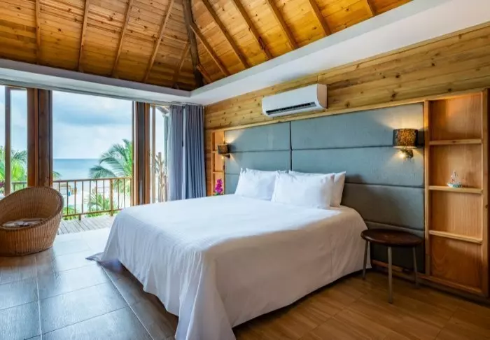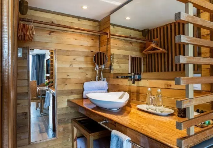 Hotellet har endast 42 rum, vilket garanterar en mysig och intim vistelse. Alla rum är byggda i trä och bambu och smälter väl in i de naturliga omgivningarna. Rummen är utrustade med luftkonditionering, wifi, satellit-TV, minibar/kylskåp, värdeskåp och eget badrum med toalettartiklar.