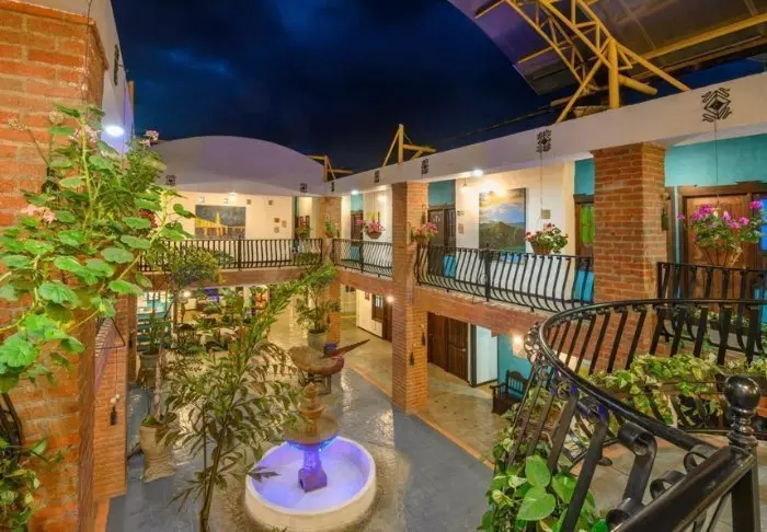 Salento Real Hotel ligger mitt i Colombias kaffeområde i den trivsamma staden Salento, endast 10 kilometer från Cocoradalen. Rakt utanför hotellet kan du strosa runt på de mysiga gatorna med vackra färgglada hus och insupa alla de olika intrycken.