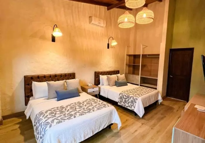 Hotellet utmärker sig med sin autenticitet och traditionella inredning inspirerad av kolonialtiden. Alla rum är utrustade med tv, wifi och värdeskåp samt har eget badrum med vatten som värms upp med hjälp av solceller.