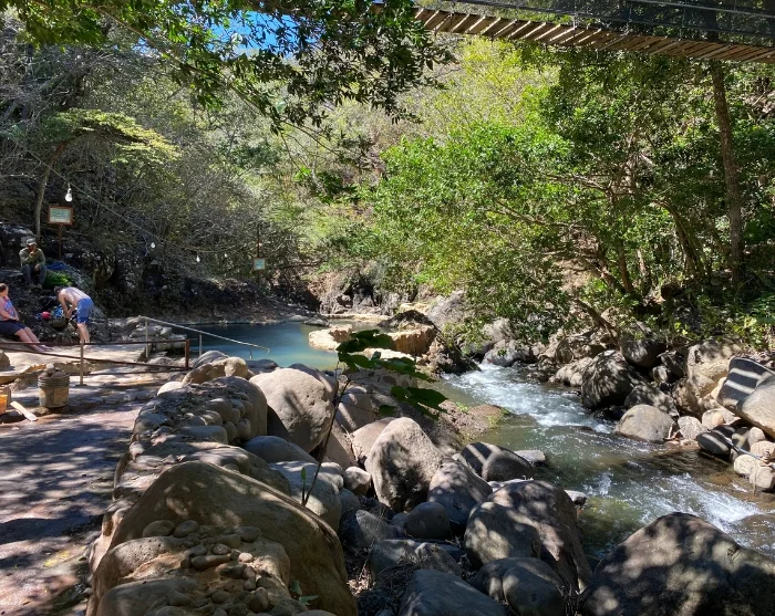 Dagen avslutas med avkoppling i de varma källorna vid Río Negro. De naturliga, mineralrika bassängerna värms upp av vulkanen Rincón de la Vieja och ligger vackert omgivna av områdets tropiska skog. Här kan du njuta av det varma vattnet och unna dig ett vulkaniskt lerbad, där du täcker kroppen med mineralrik lera och sedan sköljer av den i det svala flodvattnet – en naturlig spaupplevelse som lämnar huden mjuk och förnyad.