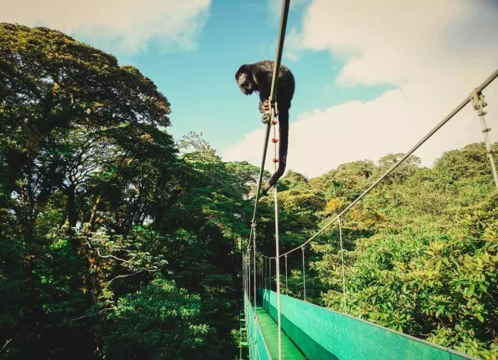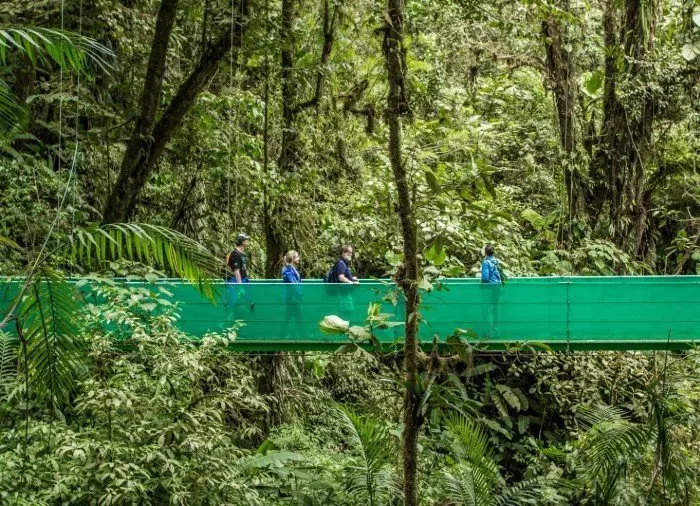 Under den här turen får du en magisk upplevelse i Monteverdes molnregnskog, då du upplever skogen ovanifrån medan du går på hängbroar bland skogens frodiga trädtoppar.