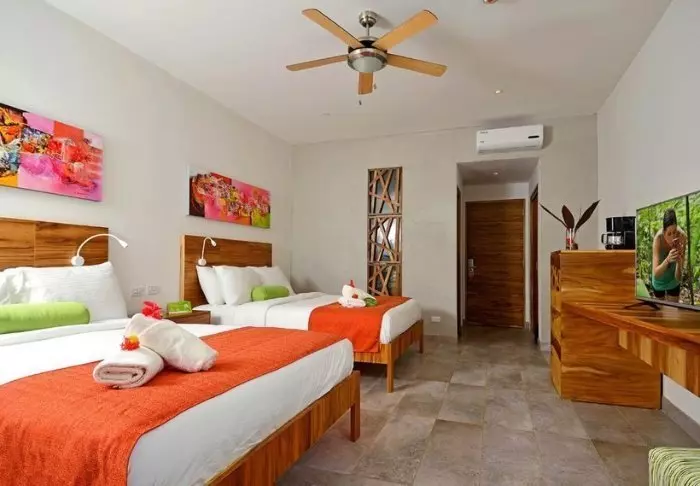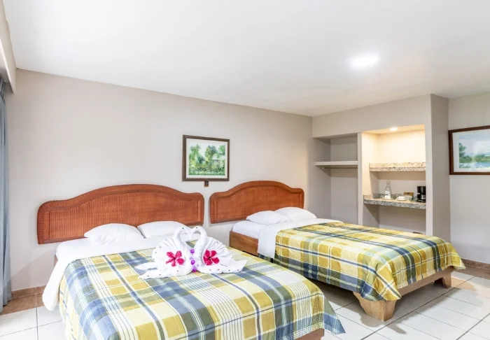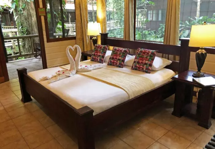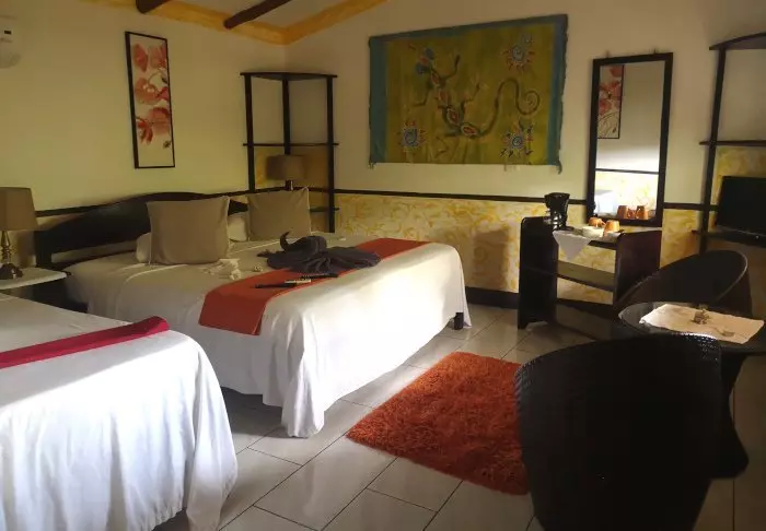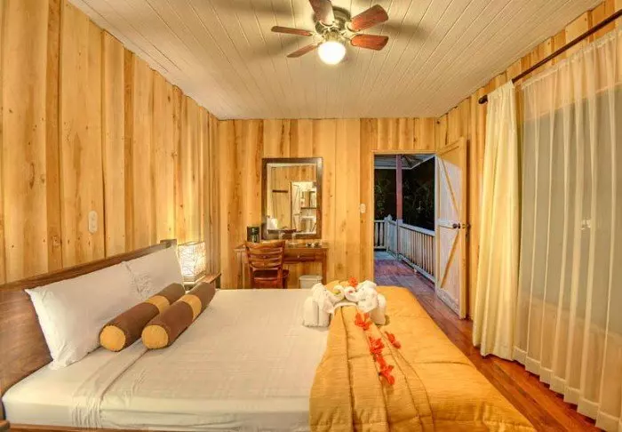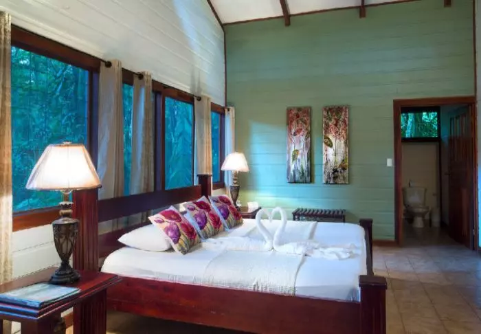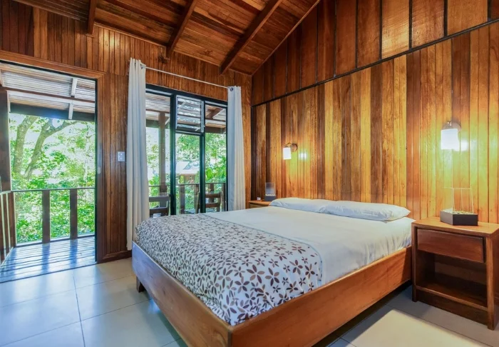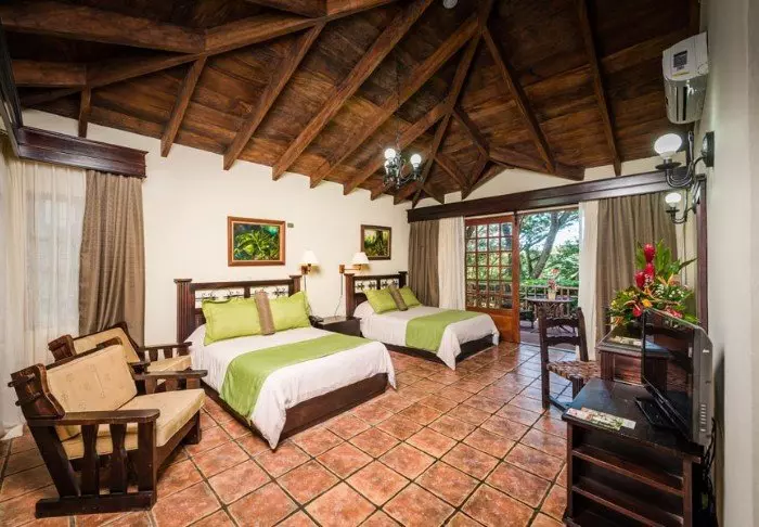 Hotellets rum är i huvudsak gjorda i trä och inredda i naturliga färger med gröna nyanser. Alla rum är utrustade med aircondition, kabel-tv och minikylskåp, samt ett privat badrum med hårtork. Dessutom har varje rum en egen liten veranda med tak och ett par stolar, där du kan koppla av och njuta av de frodiga omgivningarna – och kanske få syn på en färgrik fjäril eller kolibri.