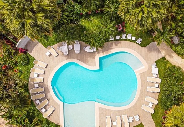 På hotellets område finns två utomhuspooler där du kan koppla av och svalka dig efter en dag full av upplevelser. De tropiska trädgårdarna skapar en rofylld och stämningsfull inramning för avkoppling och naturupplevelser.