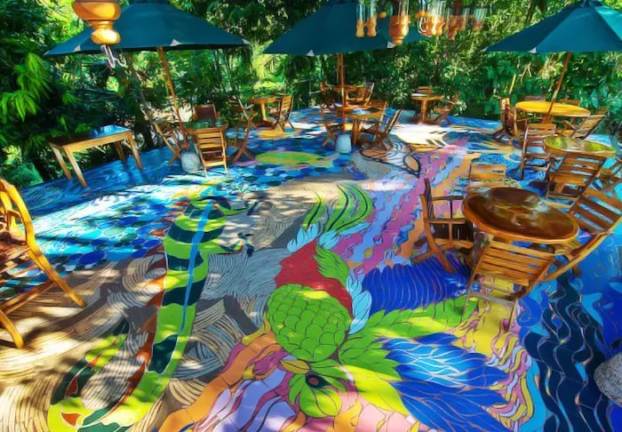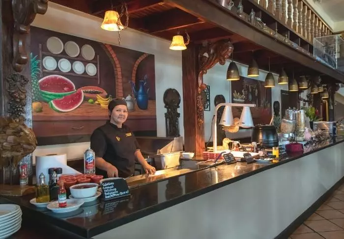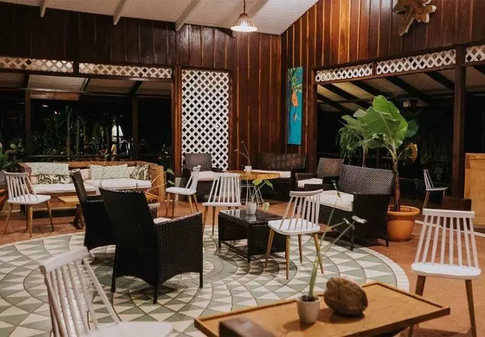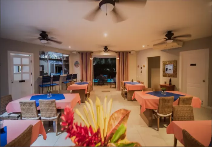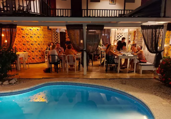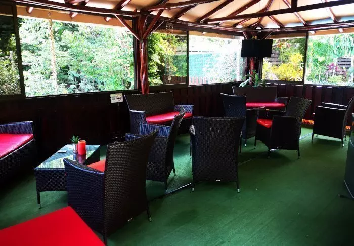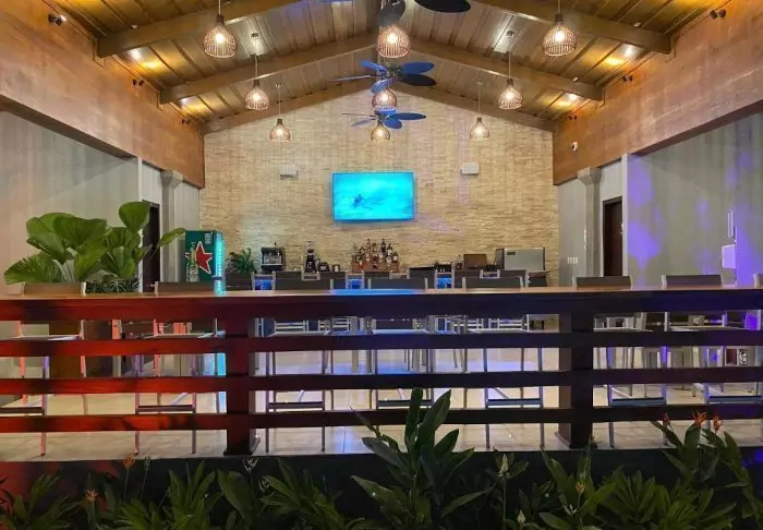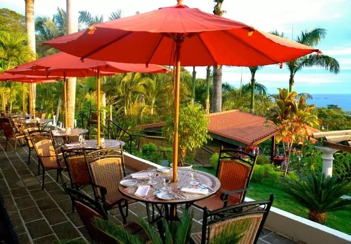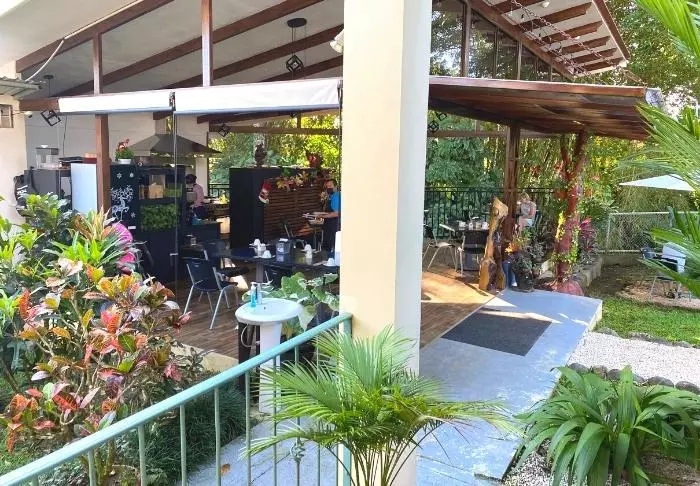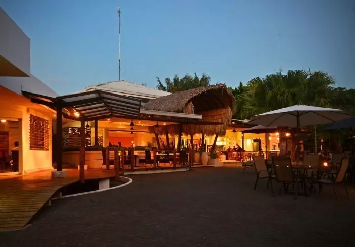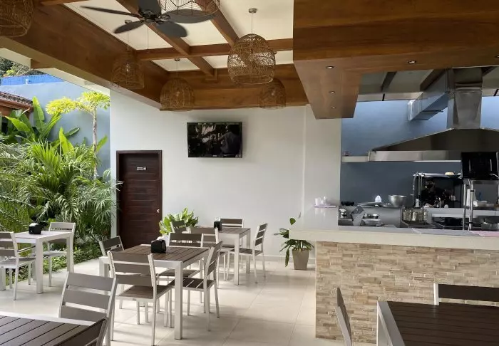 Den trivsamma restaurangen och baren med halmtak bjuder på tropisk frukost, uppfriskande drinkar och rätter från det argentinska köket kombinerat med costaricanska ingredienser och smakupplevelser.