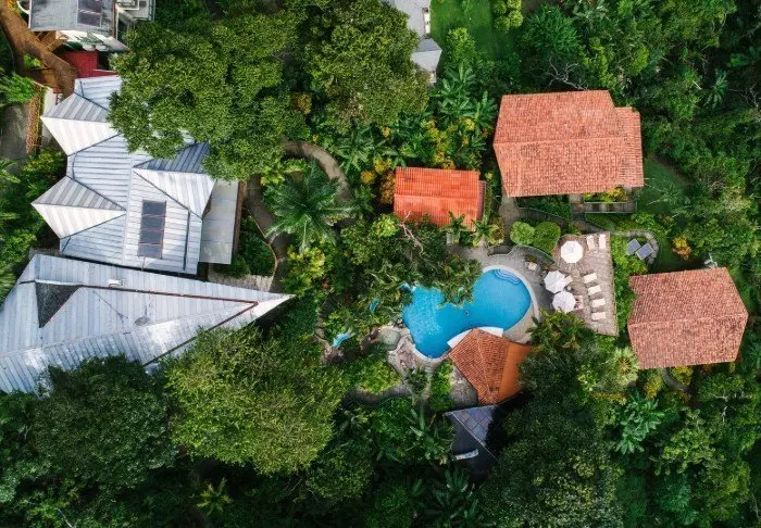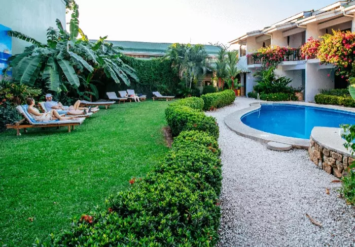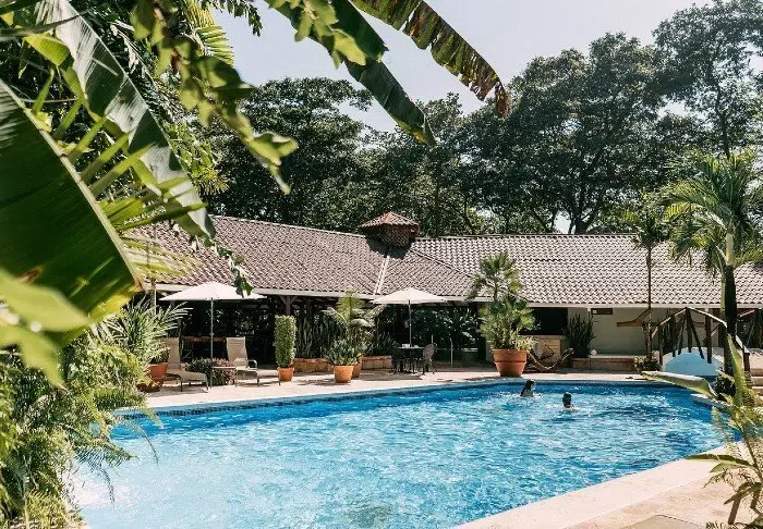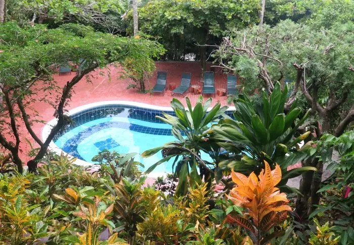 Hotellet har endast 25 rum och är byggt kring en liten frodig trädgård med pool och spabad i mitten. Här kan du slappna av i en solstol med en bra bok och njuta av en svalkande dryck eller en kopp gott costaricanskt kaffe från hotellets bar.