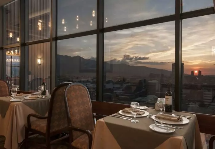 På hotellet finns två restauranger. Tropicana är en bufférestaurang som serverar både internationella och lokala rätter. Det är här den inkluderade frukostbuffén serveras. Den eleganta restaurangen El Mirador på sjuttonde våningen serverar lite finare internationella rätter som du kan avnjuta med en fantastisk utsikt över staden. Du kan också sätta dig i loungestolarna och dricka cocktails i hotellets egna bar, La Palma Bar. Det finns även möjlighet att beställa roomservice på rummet.