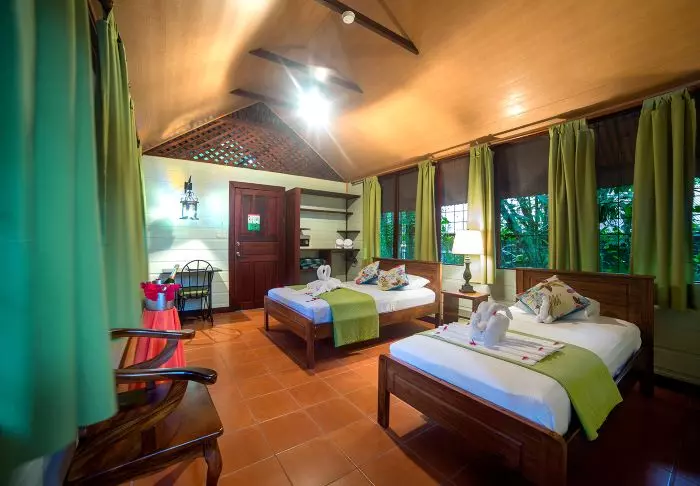 Lodgen har totalt 33 rymliga bungalower, som alla är utrustade med takfläkt och eget badrum med varmt vatten. Rummen är inredda i tropisk stil med trämöbler och färgglada tryck, som harmoniserar med den frodiga regnskogen utanför ditt fönster.