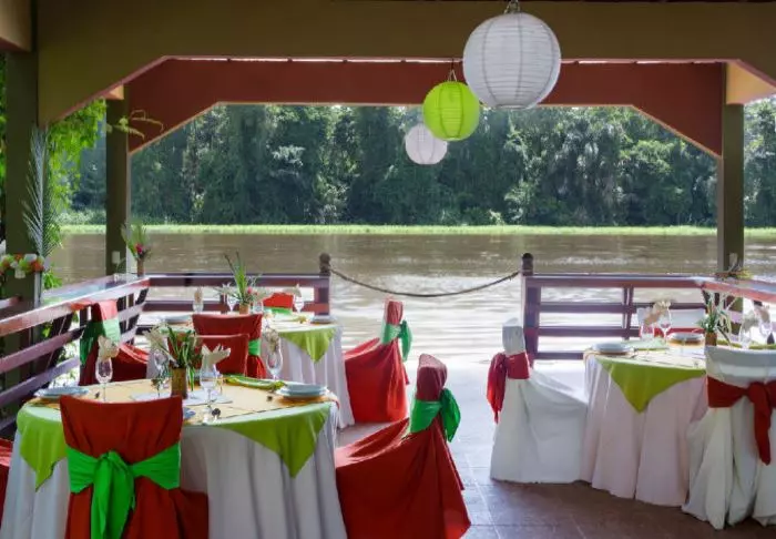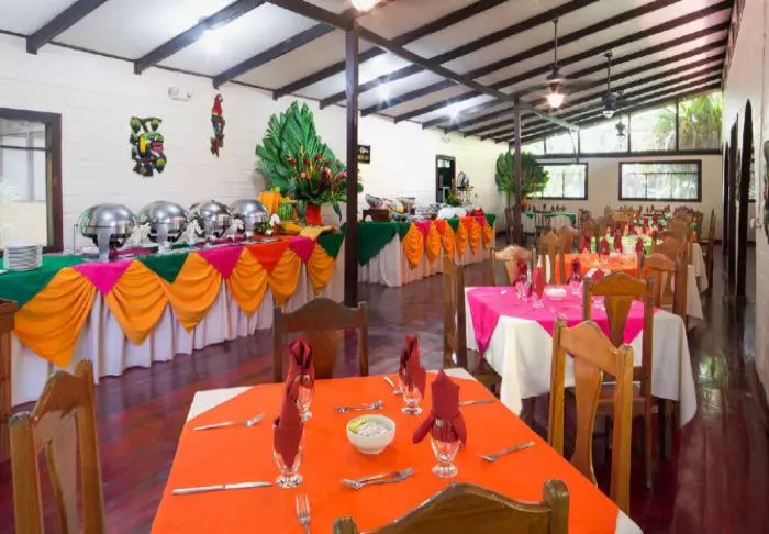 Under din vistelse i Tortuguero ingår dina måltider i priset och serveras som buffé i Mambo-restaurangen, som ligger precis vid poolen. Mot en extra avgift kan du boka bord på lodgens flytande restaurang Katonga och njuta av din middag mitt i regnskogen medan du långsamt glider fram längs Tortugueros kanaler (bokning krävs).