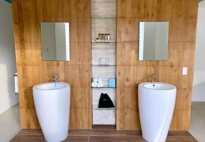 Det finns en mer formell restaurang som till största del används till middagar samt en restaurang/kafeteria där man kan äta lunch. Man bor i en ”villa” med egen terrass där man har en fin utsikt till solnedgången. Det finns TV, telefon, aircondition, kaffebryggare och safety box.