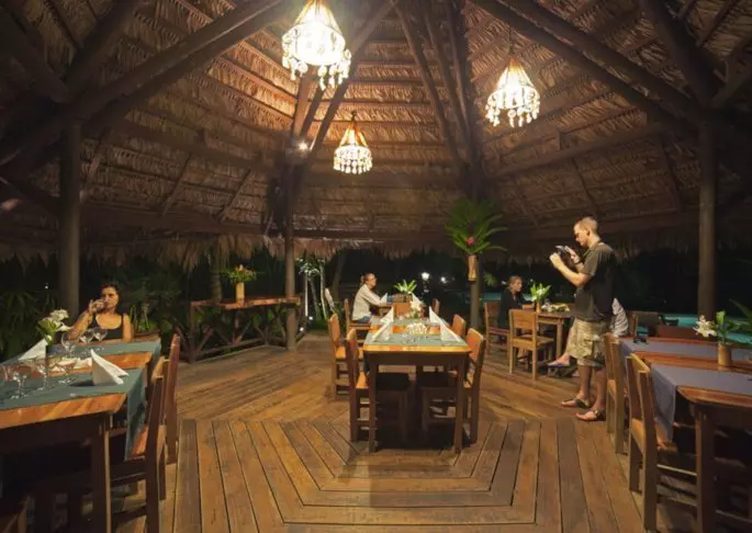 Restaurangen på Laguna Lodge erbjuder autentiska kulinariska upplevelser med naturen utanför dörren. Restaurangen serverar en mängd lokala och internationella rätter gjorda på färska lokala ingredienser. Maten serveras i de öppna matsalarna med utsikt över den täta, grönskande djungeln och lagunen. Wi-Fi finns i lobbyn och restaurangen.