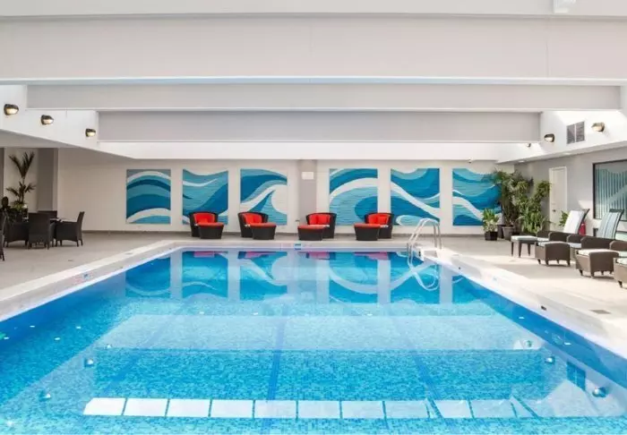 Hotellet har dessutom en inomhuspool där du kan ta dig ett dopp eller bara koppla av i loungestolarna. Vid poolen finns det också möjlighet att beställa mat och dryck. Det finns dessutom ett gym med massor av träningsutrustning.