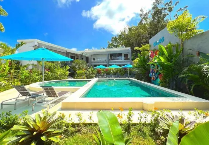 Bakom höga palmer och tropiska plantor hittar du den dolda lilla pärlan The Hideaway Hotel.