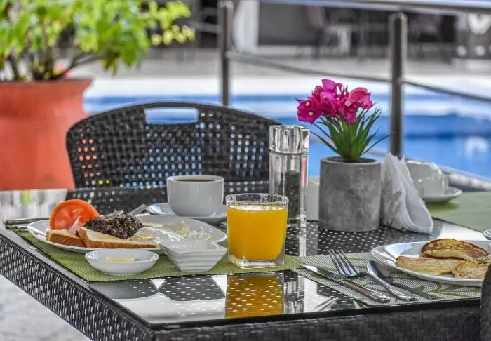 Varje morgon kan du njuta av en generös frukostbuffé i hotellets restaurang, som ger en utmärkt start på dagen inför dagens utflykter i området. Restaurangen har också öppet för lunch och middag och erbjuder ett fint urval av både lokala och internationella rätter som kan avnjutas i en avslappnad miljö.