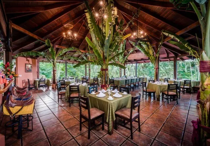I restaurangen kan du beställa både traditionella costaricanska rätter och europeiska rätter tillagade av lokala ingredienser medan du njuter av utsikten över den frodiga naturen runt lodgen. Det är också här den inkluderade frukostbuffén serveras.