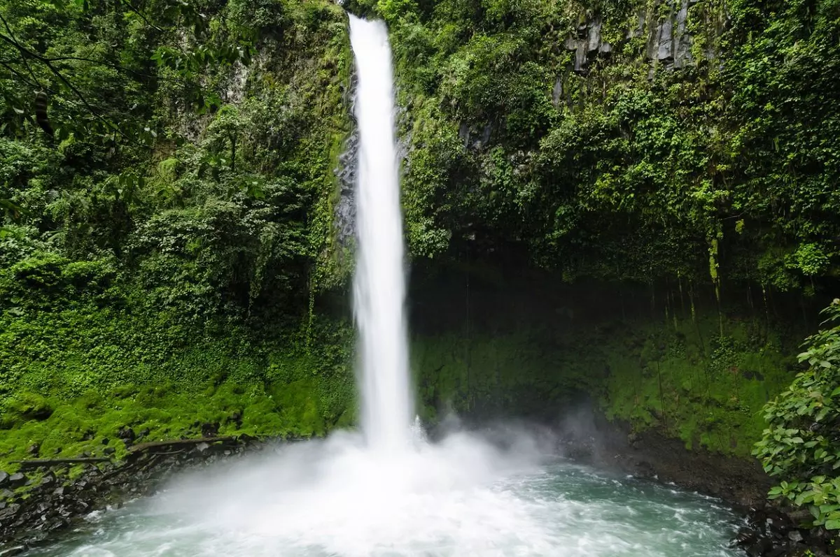 Du kan själv ta en taxi till det höga vattenfallet och bada i lagunen under vattenfallet. Taxin släpper av dig på parkeringsplatsen, varifrån du tar en promenad på ca 20 minuter ner till vattenfallet. Vägen går via en bro och trappor genom den frodiga regnskogen, vilket ger goda chanser att se tukaner, apor och andra tropiska djur på din väg. Du kan också besöka några av de varma källorna i området som du inte provade i går, eller köpa till en extra utflykt.