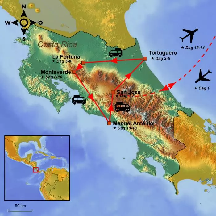 Resan startar i Costa Ricas huvudstad San José och går sedan vidare till den frodiga djungeln i Tortuguero nationalpark. Här omges du av vacker natur och ett spännande djurliv, och all transport sker i båt på Tortugueros många kanaler.