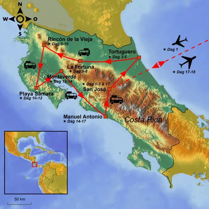 Njut av Costa Ricas unika natur och mångfaldiga djurliv i Tortuguero, vid Arenal-vulkanen, i Rincón de la Vieja och i Monteverdes molnregnskog. Upplev sköna stränder i Sámara och Manuel Antonio.